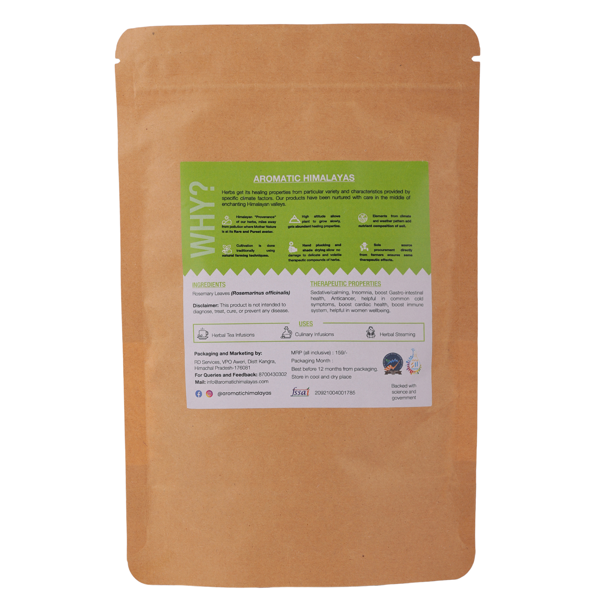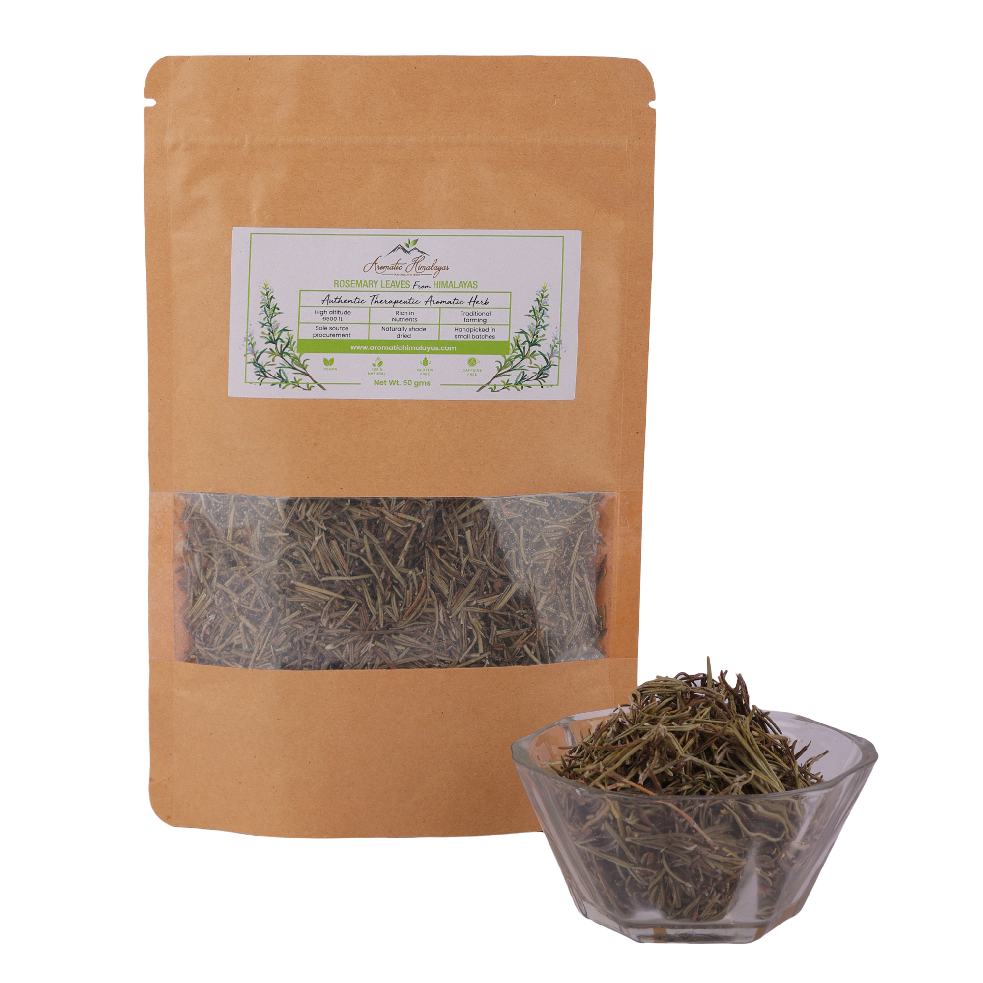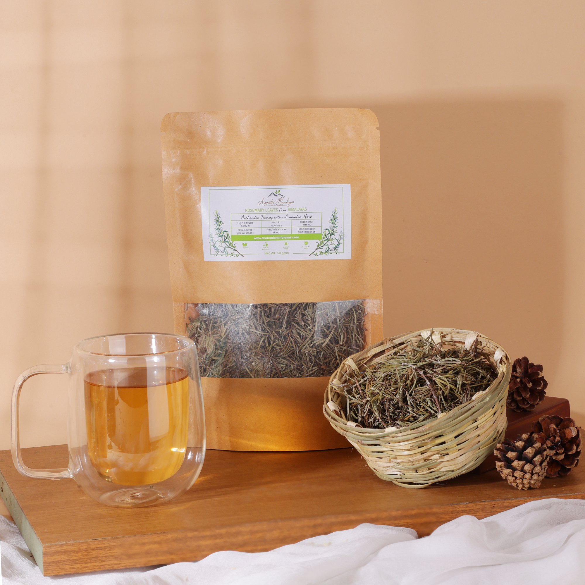 Aromatic Himalayas-Pure Rosemary Herb Tea- Rosemary leaves from High altitude Western Himalayas- 6500ft -Herbal Tea – Caffeine Free | Tisane | Rosemary leaves ( (Rosemarinus officinalis) Species- 50 gms-25 cupsIndulge in the serene flavors of the Himalayas with our exquisite Rosemary Herb Tea. Elevate your tea-drinking experience with the refreshing and invigorating qualities of rosemary, to soothe your senses and invigorate your day.